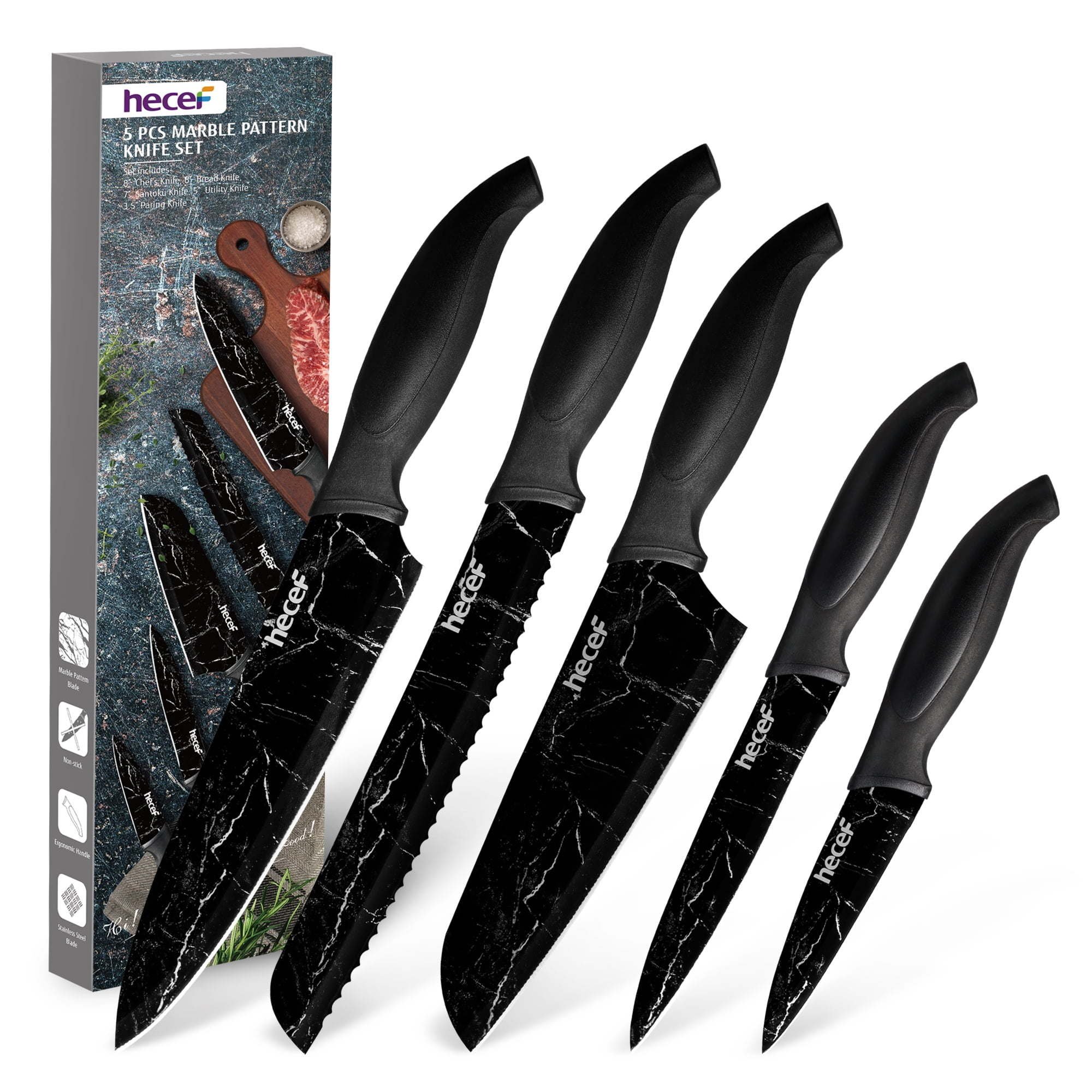 Hecef 5-Piece Kitchen Knife Set, Non-stick Marble Pattern Coated Sharp Stainless Steel Chef Knives