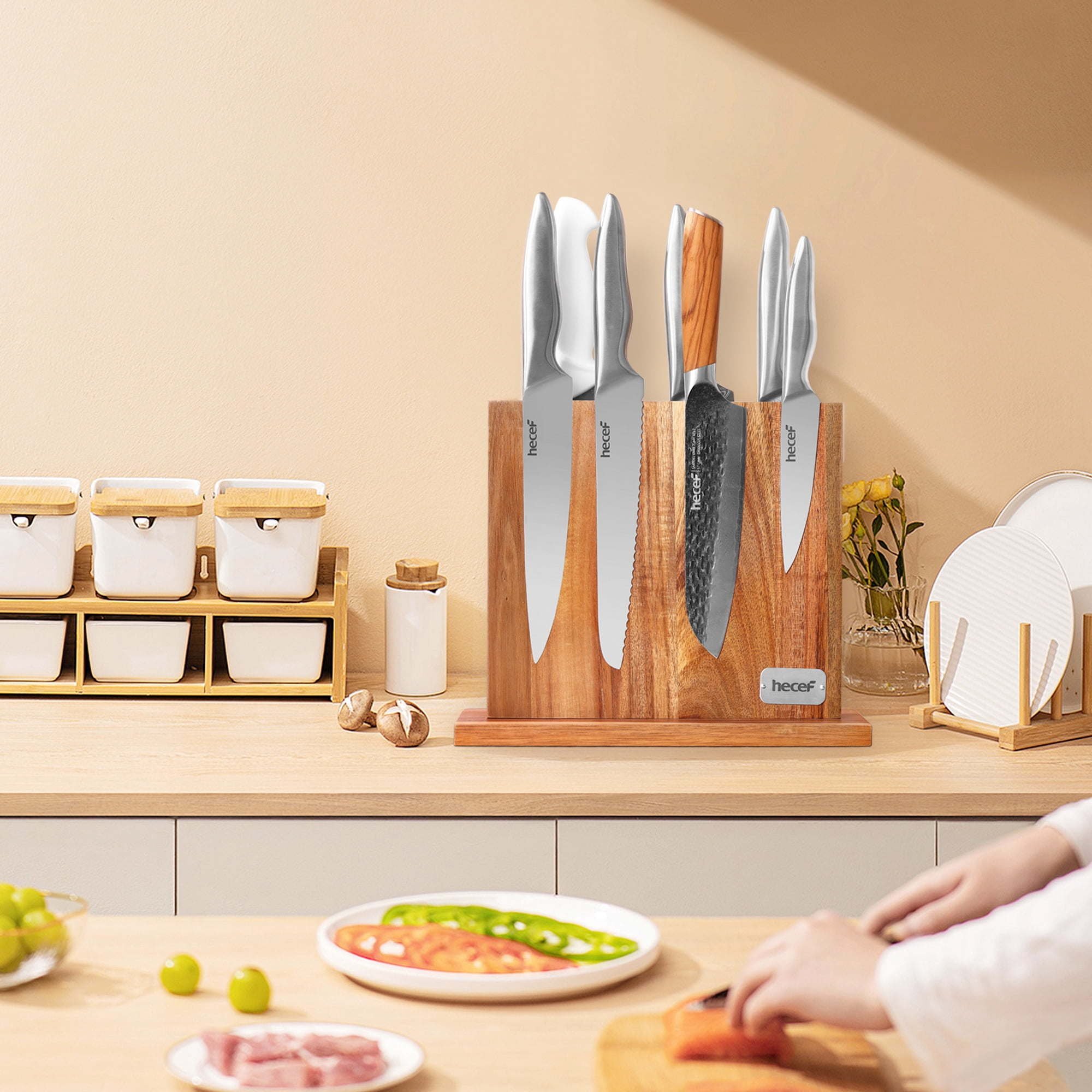 Hecef Powerful Magnetic Knife Block, Acacia Wood Double Side Magnet Kitchen Knife Holder Without Knives Hecef Powerful Magnetic Knife Block, Acacia Wood Double Side Magnet Kitchen Knife Holder Without Knives Hecef Powerful Magnetic Knife Block, Acacia Wood Double Side Magnet Kitchen Knife Holder Without Knives