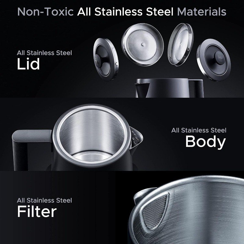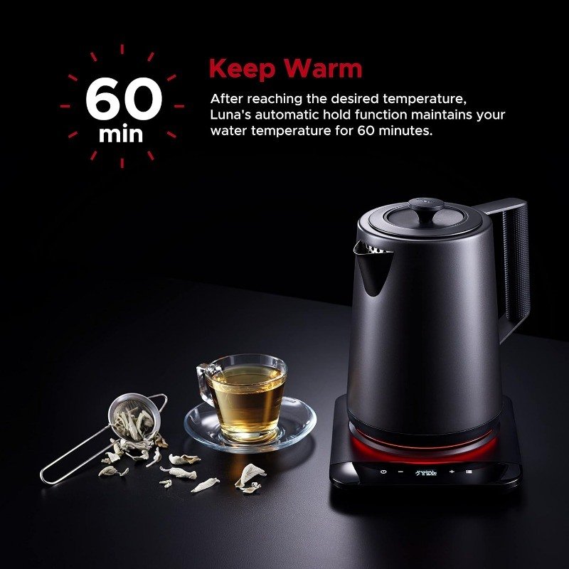 SAKI Luna 1.75L Electric Kettle - Plastic-Free & All Stainless Steel, Ultra-Fast 1500W Boil, Precise Temp Control & Live Display, 7 Temperature Presets, Non-Slip Handle, Mute Function - Space GrayColor: Space GrayAbout this item100% Plastic-Free Stainless Steel: Prioritize your health and the environment with the SAKI Luna Electric Kettle. Crafted meticulously with a plastic-free interior, guaranteeing every cup is untainted by harmful residues. Experience an unadulterated, pure taste every single brew.Ultimate Brewing Precision with 7 Presets: Luna stands out with 7 distinct one-touch presets for Black, Green, White, Oolong, Herbal Tea, and French Press coffee. Coupled with its manual temperature control, it offers an unparalleled brewing experience. Flavor and aroma precision? Always at your command.Quick Heat-Up with 1500W Power: Luna's spacious 1.75L capacity combined with a robust 1500W heater ensures water reaches your desired temperature in record time. Perfect for those rush hours or unexpected guests.Advanced Safety Features: Your safety is our priority. The SAKI Luna comes with an auto shut-off & boil-dry protection, guaranteeing safe operations, peace of mind, and efficient energy use every time you switch it on.Ergonomic, Cordless Freedom: Say goodbye to clunky cords. Luna's seamless cordless design coupled with a comfort grip handle ensures effortless pouring and mobility. Every detail, from design to function, is crafted for user convenience.Smart Additions for Your Kitchen: The SAKI Luna comes equipped with an LED Light Ring Indicator, which adds a touch of elegance while providing real-time updates on heating progress and when your water is at the perfect temperature. Moreover, its live temperature display, paired with a remarkable 60-minute keep-warm feature, ensures you have complete control over your brewing experience.