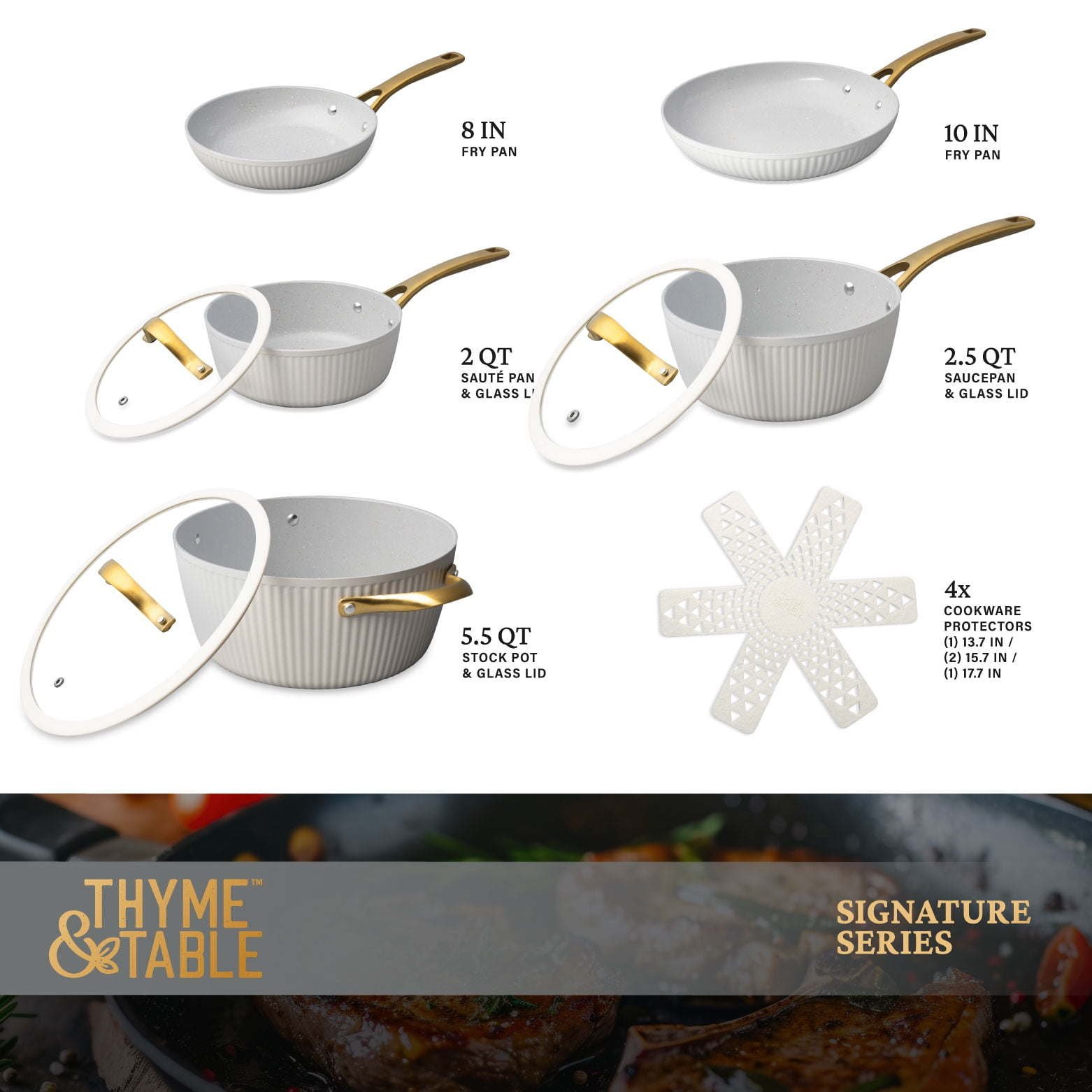 Thyme & Table 12-Piece Ceramic Non-Stick Ribbed Cookware Set, White & Gold Thyme & Table 12-Piece Ceramic Non-Stick Ribbed Cookware Set, White & Gold Thyme & Table 12-Piece Ceramic Non-Stick Ribbed Cookware Set, White & Gold