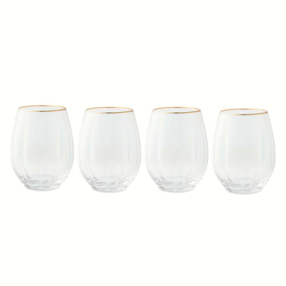 Thyme & Table 4-Piece Scalloped Stemless Wine Glass Set with Gold Trim