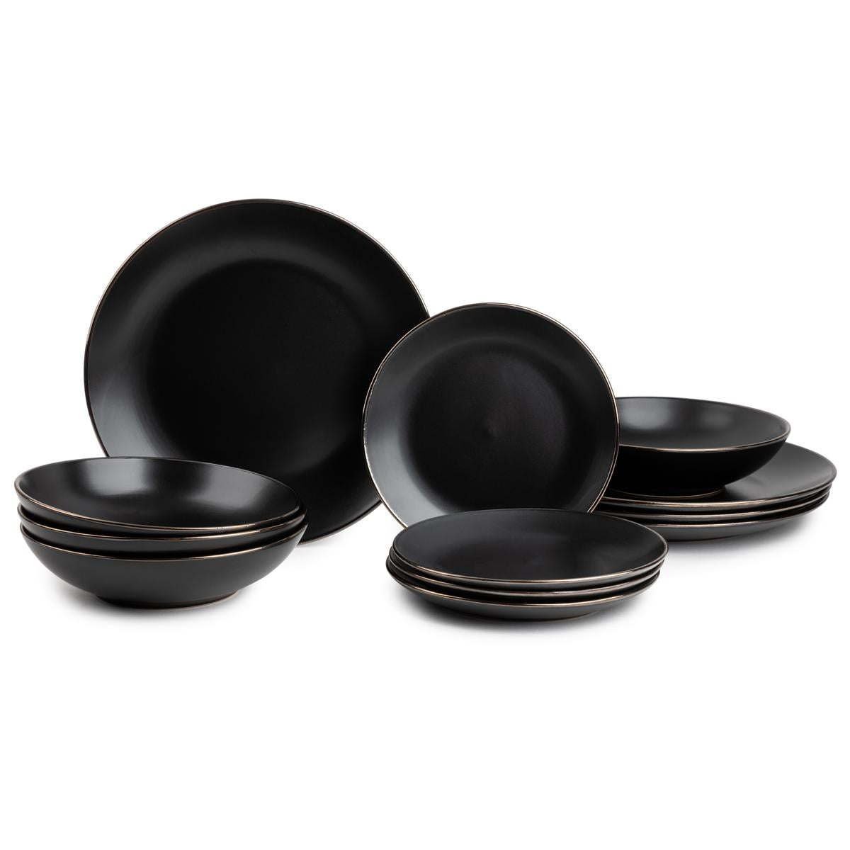Thyme & Table Dinnerware Black Onyx Stoneware, 12 Piece Set