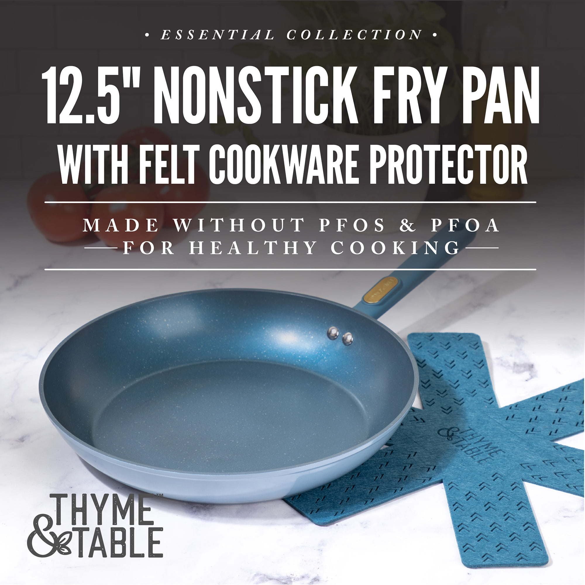 Meet the Thyme & Table Nonstick 12.5- Inch Fry Pan, Blue from our Essential line, designed to offer excellent value for cost-conscious customers. Whether adding to your Thyme and Table Set or starting fresh, our essential line frying pan offers excellent value for the cost-conscious customer, delivering quality at an affordable price.