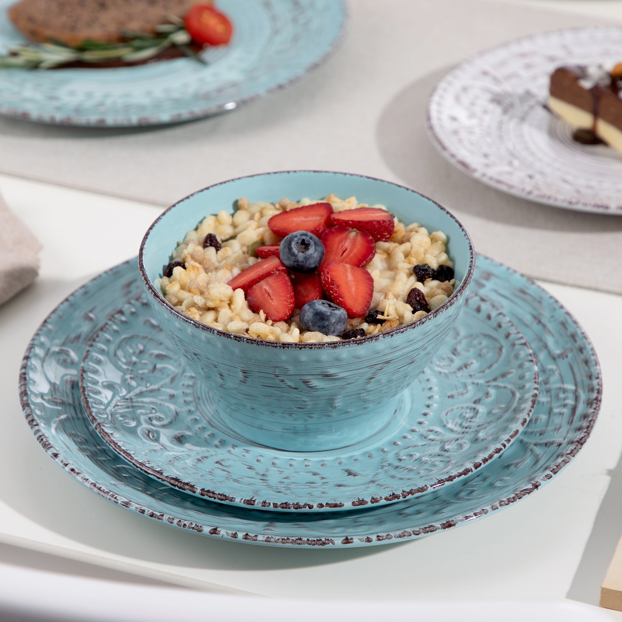 Features:Complete collections. 48-piece VINE dinner service set with a modern look consists of 12 cereal bowls Ø 15 cm, 12 dessert plates Ø 20 cm, 12 dinner plates Ø 27 cm and 12 coffee cups, 350ml; Thanks to the natural-colored design, our tableware set can be perfectly combined with other series.Nature colors elements. The dinnerware set contains two natural colors - beige and blue-green. Easy to remember the elements of nature like sea and sand, which gives you a stylish elegance and comfortable experience. The unique blue color scheme is simply reminiscent of the blue ocean, beautiful seashells and pleasant white sand!Extraordinary design and unique appearance. Our VINE combination service is made by hand from high-quality and environmentally friendly earthenware. Exquisite brown eyelash edge, beautiful embossed liana design, extraordinary workmanship and elegant modern look simply create a delicate harmony.High quality and impressive gifts. This combination service set is not only suitable for festive occasions, but also for everyday use. Dishwasher-safe, microwave-safe, refrigerator-safe, no plastic coating containing harmful substances. Easy-care. Super safe and tightly packed.Several additions from vancasso. Other other series from the brand vancasso such as NATSUKI, HARUKA, ALLEGRO, MODA, MANDALA, MACARON, TULIP, BELLA, BONBON, BONITA, JASMIN, NAVIA are also available in our shop. Impeccable customer service. We offer optimal solutions for every problem, simply contact us.